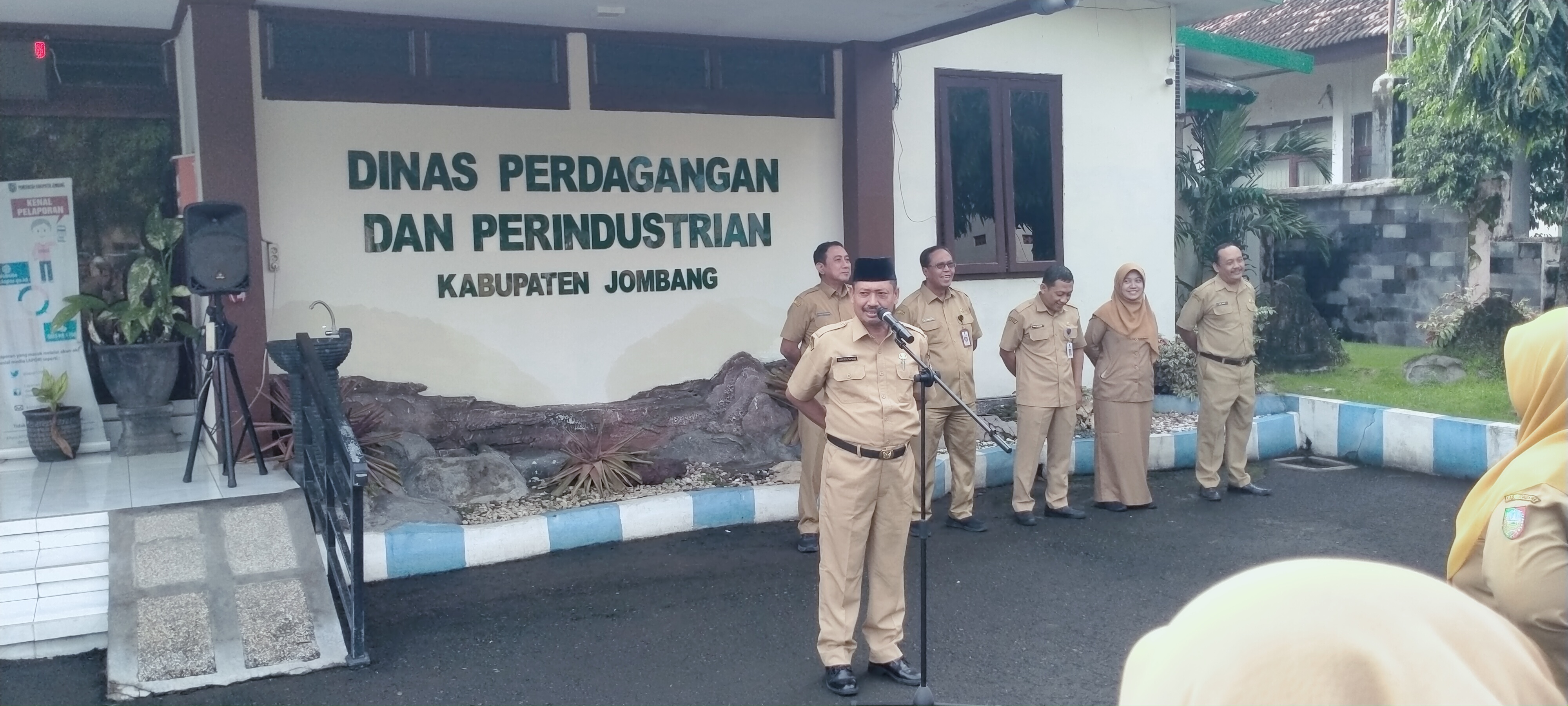 Dinas Perdagangan dan Perindustrian Kabupaten Jombang adalah perangkat daerah yang menyelenggarakan urusan pemerintahan daerah di bidang perdagangan dan bidang perindustrian. Dinas ini dipimpin oleh seorang Kepala Dinas yang berkedudukan di bawah dan bertanggung jawab kepada Bupati Jombang. Dinas Perdagangan dan Perindustrian Kabupaten Jombang beralamat di Jalan KH. Wakhid Hasyim No. 143 Jombang. Nomor telepon Dinas ini adalah (0321) 874549. Tugas Pokok dan Fungsi Dinas Perdagangan dan Perindustrian Kabupaten Jombang mempunyai tugas membantu Bupati melaksanakan urusan pemerintahan yang menjadi kewenangan Pemerintah Kabupaten Jombang di bidang perdagangan dan bidang perindustrian. Dalam melaksanakan tugasnya, Dinas Perdagangan dan Perindustrian Kabupaten Jombang menyelenggarakan fungsi: Perumusan kebijakan teknis di bidang perdagangan dan bidang perindustrian; Pelaksanaan kebijakan teknis di bidang perdagangan dan bidang perindustrian; Pembinaan dan pengawasan penyelenggaraan urusan pemerintahan di bidang perdagangan dan bidang perindustrian; Pelaksanaan tugas lain yang diberikan oleh Bupati sesuai dengan tugas dan fungsinya. Struktur Organisasi Struktur organisasi Dinas Perdagangan dan Perindustrian Kabupaten Jombang terdiri dari: Kepala Dinas Sekretariat Bidang Pengembangan dan Distribusi Bidang Sarana Perdagangan dan Barang Pokok Penting Bidang Kemetrologian Bidang Perindustrian Dan UPT Pasar Kegiatan dan Program Kegiatan dan program Dinas Perdagangan dan Perindustrian Kabupaten Jombang antara lain: Pengembangan pasar tradisional Distribusi barang pokok Pengawasan kemetrologian Pengembangan industri Dinas Perdagangan dan Perindustrian Kabupaten Jombang terus berupaya meningkatkan kualitas pelayanan kepada masyarakat. Hal ini dilakukan dengan berbagai upaya, antara lain: Meningkatkan kompetensi pegawai Meningkatkan sarana dan prasarana Meningkatkan koordinasi dengan stakeholder Dinas Perdagangan dan Perindustrian Kabupaten Jombang berkomitmen untuk mewujudkan Kabupaten Jombang yang maju, mandiri, dan sejahtera.