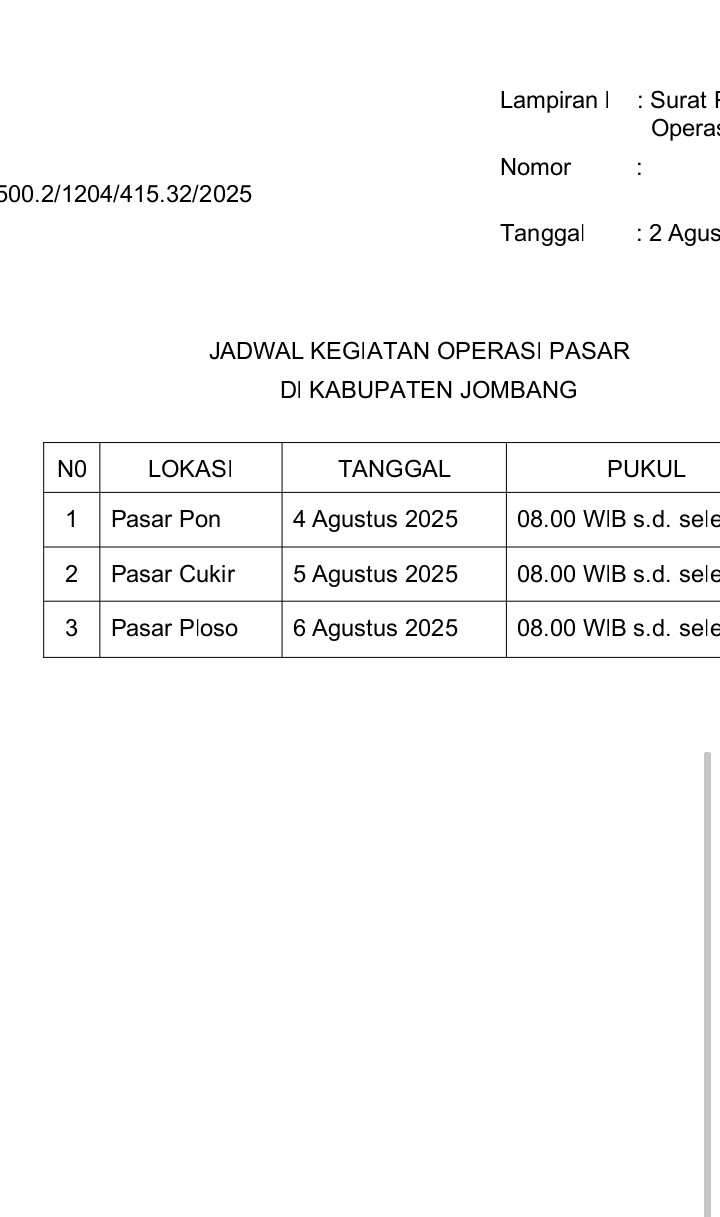Melalui kegiatan seperti ini, Pemerintah Kabupaten Jombang berharap dapat terus memperkuat jaring pengaman sosial dan mendorong ketersediaan serta keterjangkauan bahan pangan bagi seluruh lapisan masyarakat.