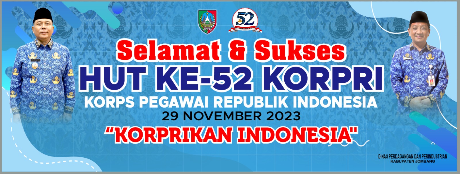 Sementara itu, Dinas Perdagangan Kabupaten Jombang dalam memperingati HUT KORPRI mengikuti Upacara di Lapangan Pemkab Jombang dan memasang banner ucapan selamat di halaman Kantor Disdagrin Jl. KH. Wakhid Hasyim 143 Jombang dengan tema KORPRIKAN INDONESIA.