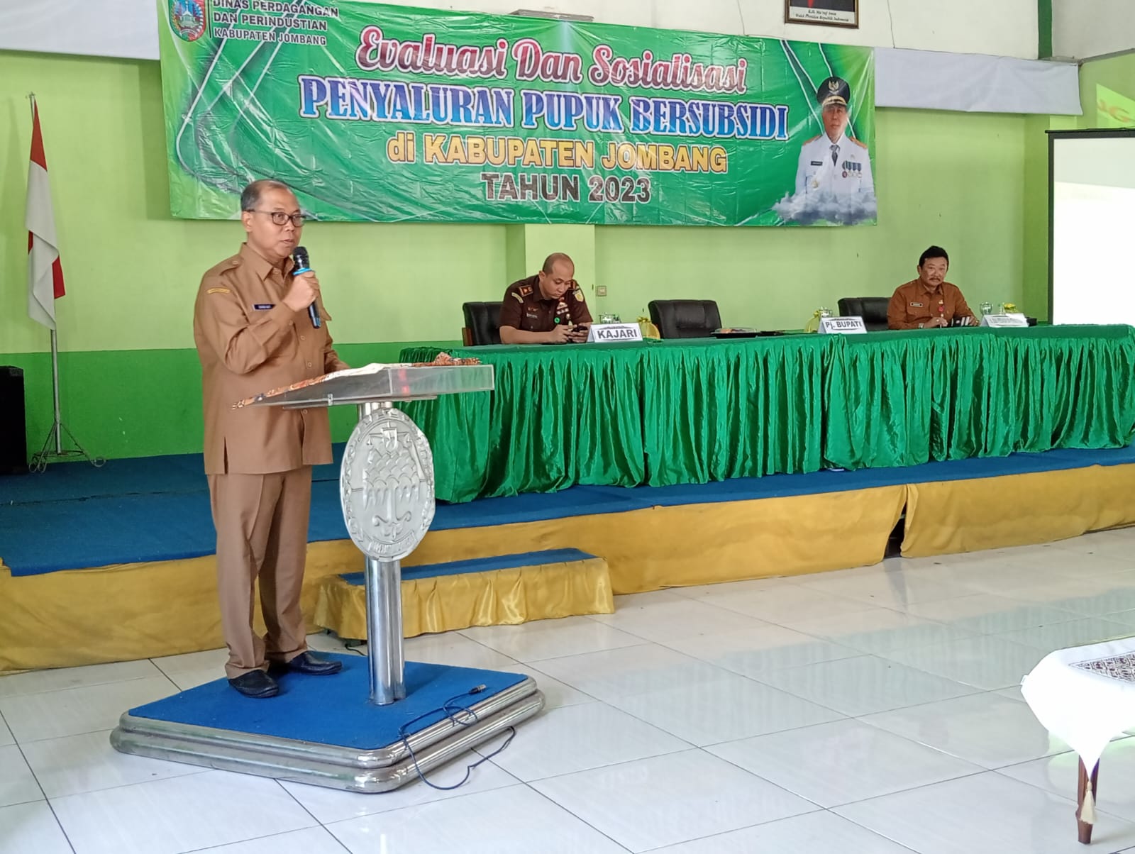 Dalam kesempatan yang sama, Kepala Dinas Perdagangan dan Perindustrian Kabupaten Jombang, Drs. Suwignyo MM, menyampaikan bahwa kegiatan evaluasi dan sosialisasi ini merupakan upaya Pemerintah Kabupaten Jombang untuk meningkatkan kualitas penyaluran pupuk bersubsidi di Kabupaten Jombang. Ia berharap, kegiatan ini dapat meningkatkan pemahaman para distributor dan pemilik kios pupuk tentang tata cara penyaluran pupuk bersubsidi yang tepat sasaran dan sesuai aturan yang berlaku.