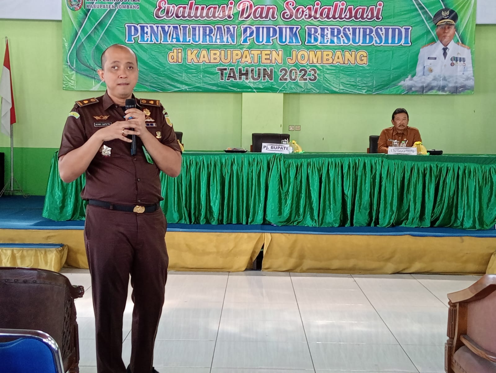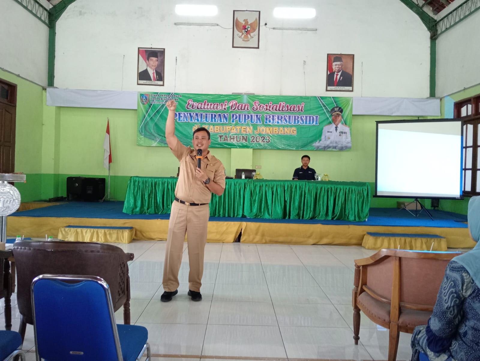 Kegiatan evaluasi dan sosialisasi ini menghadirkan narasumber dari Dinas Pertanian Kabupaten Jombang, Kejaksaan Negeri Jombang dan PT Pupuk Indonesia. Narasumber dari Dinas Pertanian Kabupaten Jombang menyampaikan materi tentang tata cara pengajuan dan penyaluran pupuk bersubsidi. Narasumber dari Kejaksaan Negeri Jombang Dani Saputra K, SH, MH, menyampaikan materi tentang hukum dan sanksi yang berkaitan dengan penyaluran pupuk bersubsidi dengan tema Mencegah perkembangan mafia pupuk dalam perspektif Permentan 10/2022 dan Juknis Pupuk Subsidi Tahun 2023 . Sedangkan narasumber dari PT Pupuk Indonesia menyampaikan materi Sosialisasi Permendag RI No.4 tahun 2023 tentang jenis-jenis pupuk bersubsidi dan mekanisme penyalurannya.